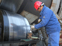 止推滚轮采用了先进的液压技术,其液压系统位于基座的下部,可以使现场布置合理;并且液压系统自动化控制较强,从而减少人工的劳动力,提高了自动化程度。